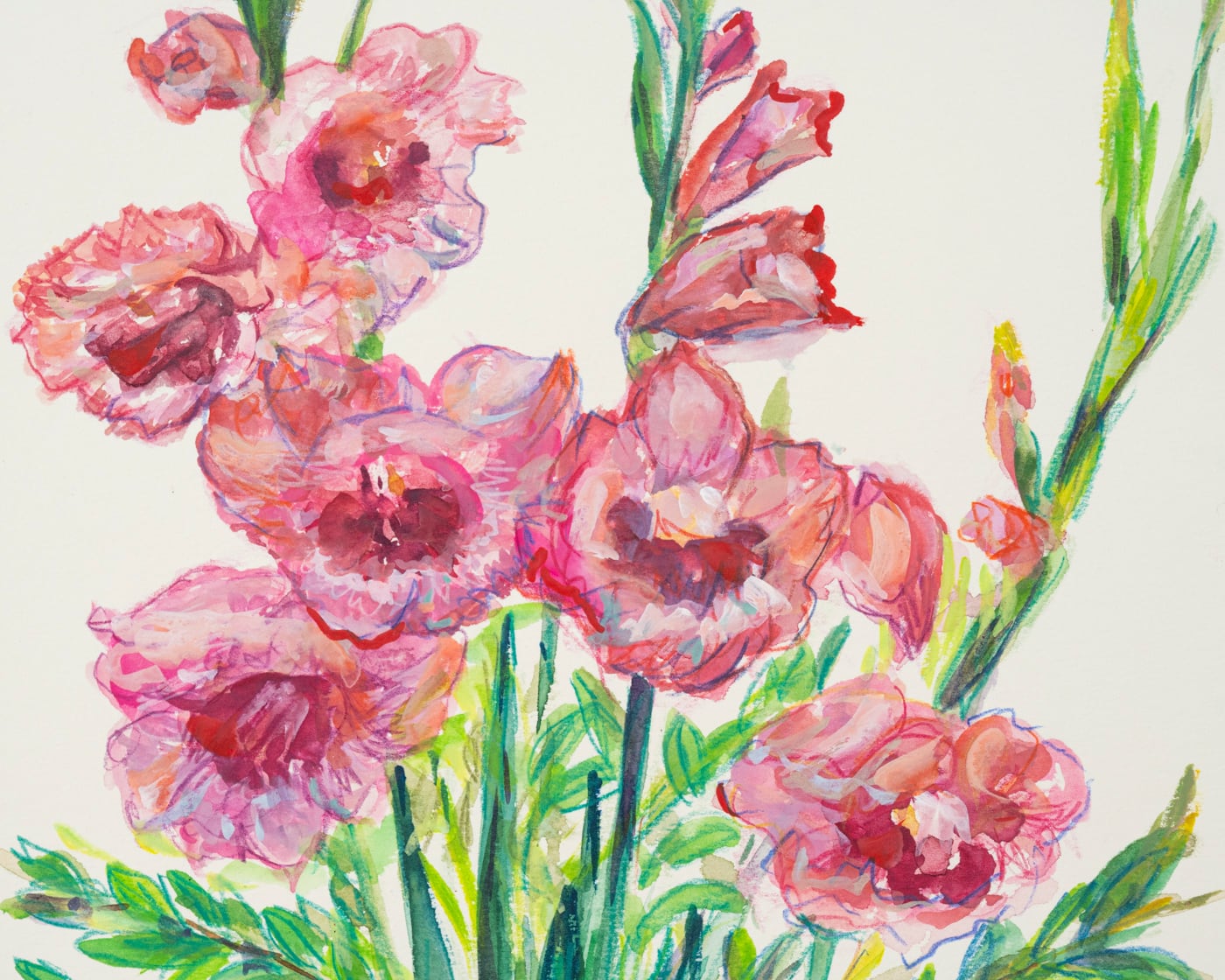 小さな子どもから大人まで、様々な場所で月に500人以上の方と一緒に絵を描く時間を過ごす中で、とても温かなエネルギーを受け取っています。今回は、ピンク系の色彩の作品を並べたくなりました。