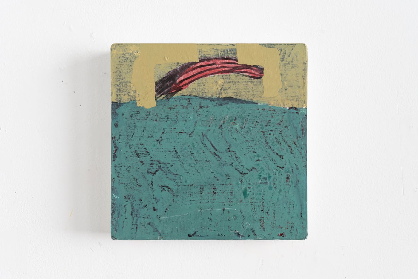 絵の具を置いては拭い、削り、また置く、その反復の中に、やがて形のない何かが現れてくるのを待つ。何気ない顔をしていないと現れてこない、直視しようとすると消える星のような「それ」を、知覚せずただ拾うように探しています。