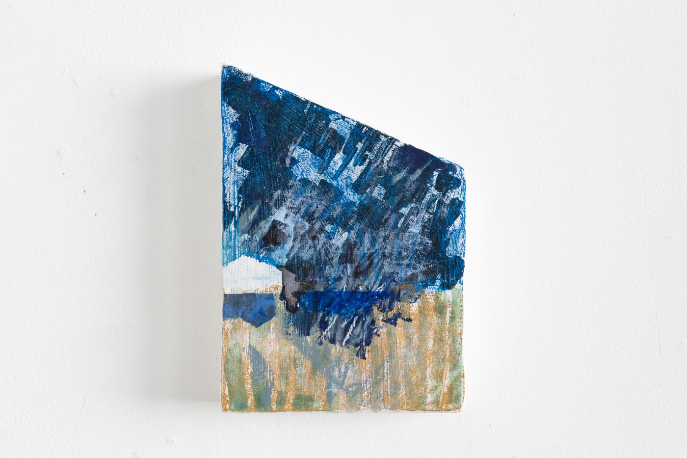 絵の具を置いては拭い、削り、また置く、その反復の中に、やがて形のない何かが現れてくるのを待つ。何気ない顔をしていないと現れてこない、直視しようとすると消える星のような「それ」を、知覚せずただ拾うように探しています。