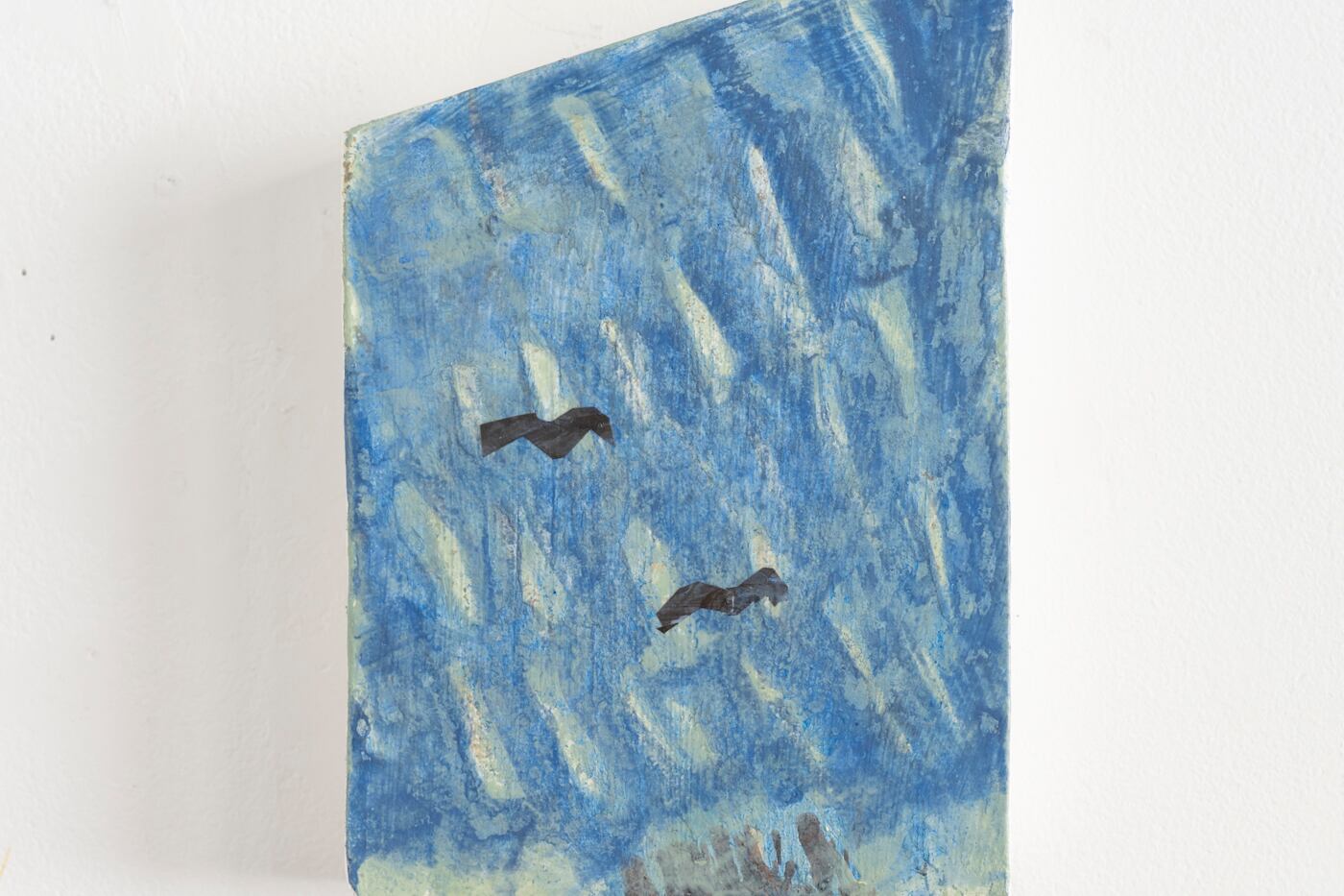 絵の具を置いては拭い、削り、また置く、その反復の中に、やがて形のない何かが現れてくるのを待つ。何気ない顔をしていないと現れてこない、直視しようとすると消える星のような「それ」を、知覚せずただ拾うように探しています。