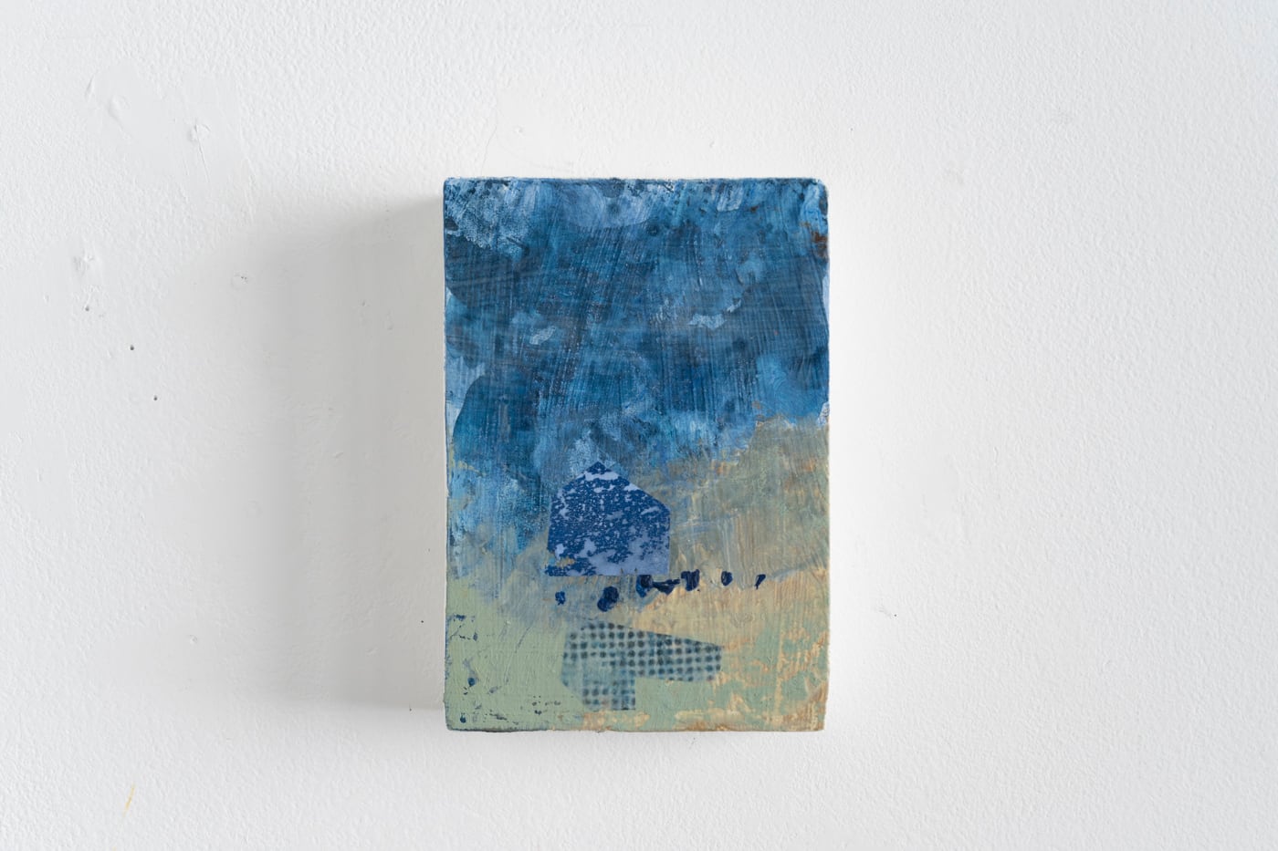 絵の具を置いては拭い、削り、また置く、その反復の中に、やがて形のない何かが現れてくるのを待つ。何気ない顔をしていないと現れてこない、直視しようとすると消える星のような「それ」を、知覚せずただ拾うように探しています。