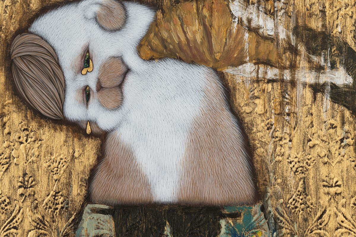 <視覚で触る>をテーマに生き物の肖像を制作をしています。事物のミクロの単位や成り立ちに興味を持つ性質であるため、毛皮を描きたいという欲求は自然と地肌の色に固有色で毛を一本一本描くというスタイルにつながりました。生き物を描く中で今回テーマに選んだのは「食べ物」です。食べることは生きること。でも実際の生活の中では健康や社会性、命の重みなど様々な理由で制約が頭をよぎると思います。苦しくもあり、楽しくも可愛らしくもある、それぞれの食べ物への葛藤をご覧ください。