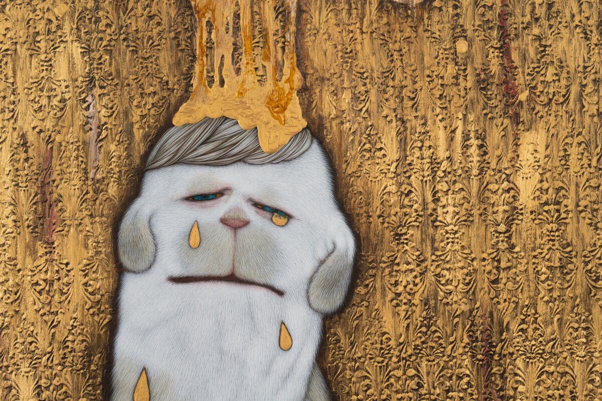 <視覚で触る>をテーマに生き物の肖像を制作をしています。事物のミクロの単位や成り立ちに興味を持つ性質であるため、毛皮を描きたいという欲求は自然と地肌の色に固有色で毛を一本一本描くというスタイルにつながりました。生き物を描く中で今回テーマに選んだのは「食べ物」です。食べることは生きること。でも実際の生活の中では健康や社会性、命の重みなど様々な理由で制約が頭をよぎると思います。苦しくもあり、楽しくも可愛らしくもある、それぞれの食べ物への葛藤をご覧ください。