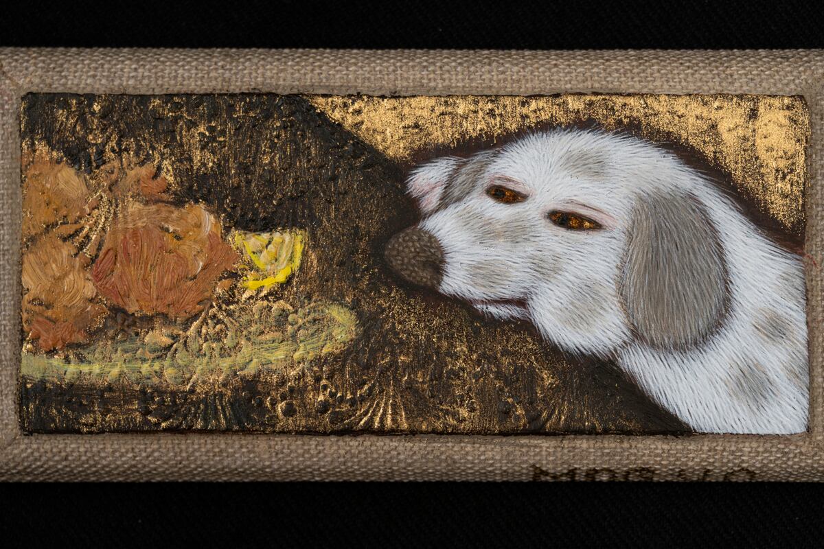 <視覚で触る>をテーマに生き物の肖像を制作をしています。事物のミクロの単位や成り立ちに興味を持つ性質であるため、毛皮を描きたいという欲求は自然と地肌の色に固有色で毛を一本一本描くというスタイルにつながりました。生き物を描く中で今回テーマに選んだのは「食べ物」です。食べることは生きること。でも実際の生活の中では健康や社会性、命の重みなど様々な理由で制約が頭をよぎると思います。苦しくもあり、楽しくも可愛らしくもある、それぞれの食べ物への葛藤をご覧ください。