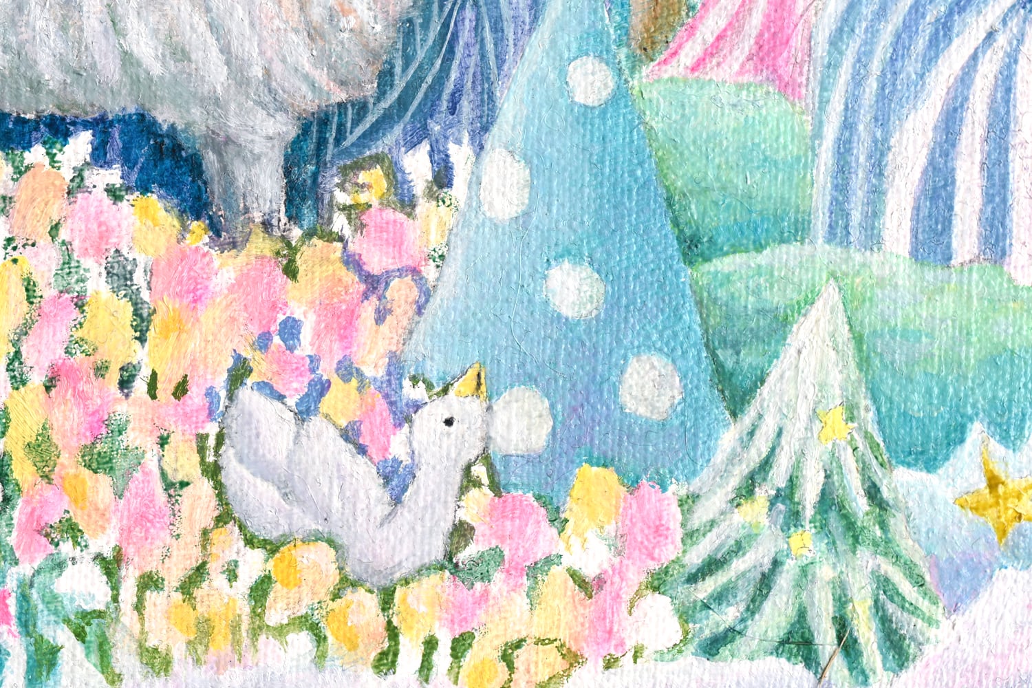 子供の頃に眠れず夜中に考えていた世界が今もまだそこにあったらと真夜中のカーテンの向こう側をテーマに制作している。